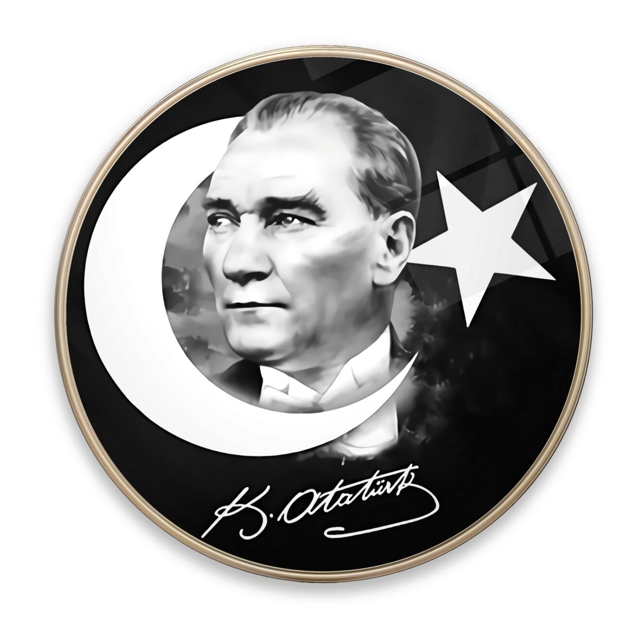Atatürk Yuvarlak Cam Tablo | Hediyelik, Dekoratif, Ofis, Mutfak
