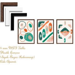 Tablonun çerçevesi, sağlam ve estetik bir görünüm sunan **plastik** malzemeden yapılmıştır. Çerçeve, farklı dekorasyon stillerine uyum sağlaması için üç renk seçeneği ile sunulmaktadır: