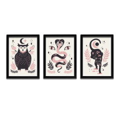 Bohem Tarz MDF Plastik Çerçeveli 3'lu Dekoratif Tablo 44