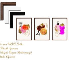 Tablonun çerçevesi, sağlam ve estetik bir görünüm sunan **plastik** malzemeden yapılmıştır. Çerçeve, farklı dekorasyon stillerine uyum sağlaması için üç renk seçeneği ile sunulmaktadır: