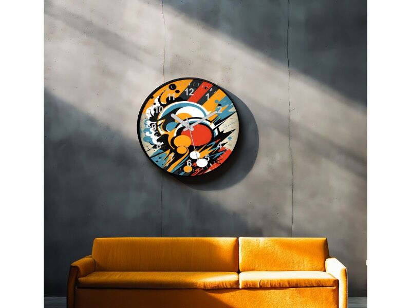Dekoratif 3D Baskı Geometrik Desen Yuvarlak Duvar Saati -33