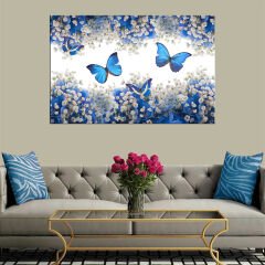 Dekoratif Baskı Çiçekler ve Kelebeler Kanvas Tablo