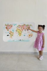 Eğitici Dünya Haritası Dünya Atlası Çocuk ve Bebek Kız Çocuğu Odası Duvar Sticker-60x105-3777