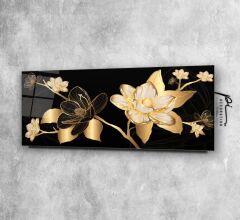 Gold Çiçekler Panoramik Cam Tablo Özel Tasarım Ofis, Mutfak Çocuk Odası, Salon Dekorasyon
