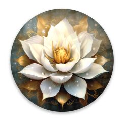 Lotus Çiçeği Yuvarlak Cam Tablo | Hediyelik, Dekoratif, Ofis, Mutfak