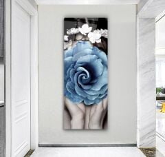 Mavi Gül Cam Tablo Özel Tasarım Ofis, Mutfak Çocuk Odası, Salon Dekorasyon