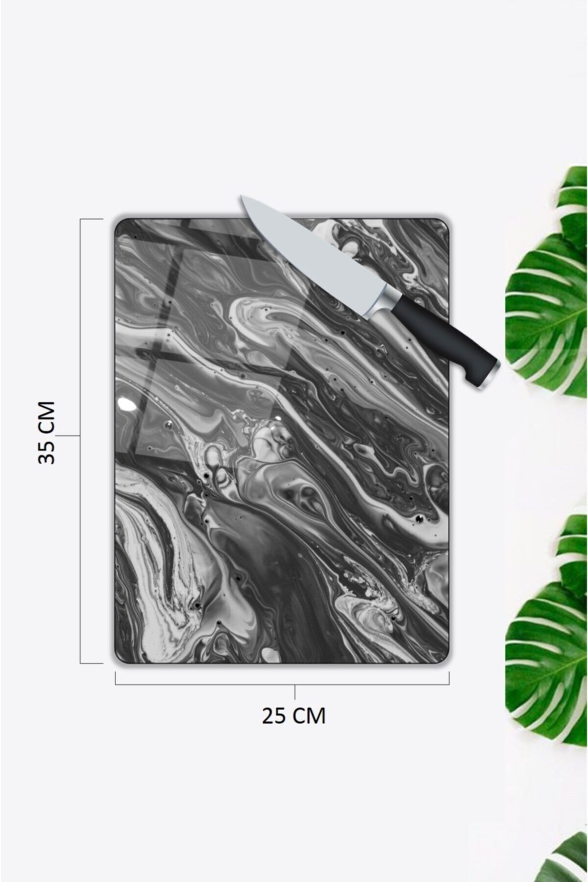 Siyah Mermer Görünümlü | Cam Kesme Tahtası |  25 x 35 cm