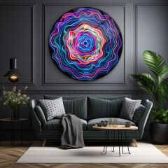 Soyut Neon Yuvarlak Cam Tablo | Hediyelik, Dekoratif, Ofis, Mutfak