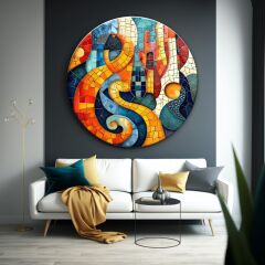 Soyut Yuvarlak Cam Tablo | Hediyelik, Dekoratif, Ofis, Mutfak